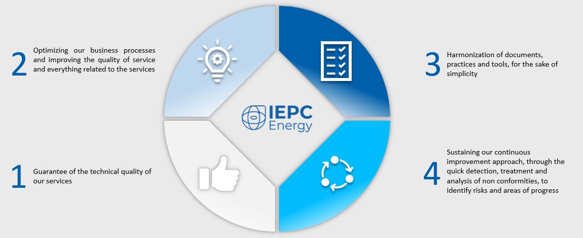 To this end and on a daily basis during the exercise of its service provision activity, IEPC Energy will strive to progress and adapt its management system with the following objectives: